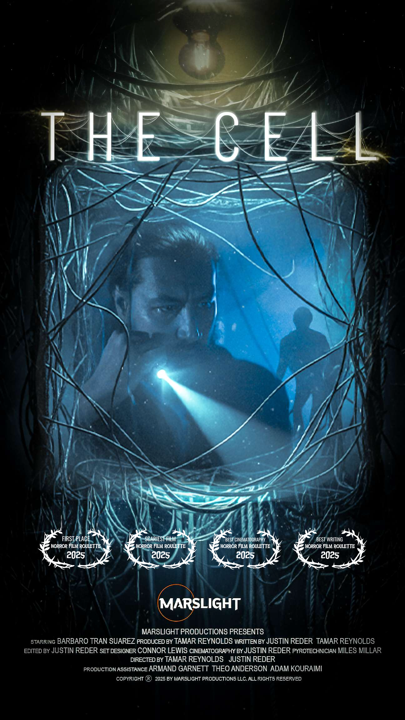 Winning multiple awards, 'The Cell' is a 5-minute short film produced for the Horror Film Roulette 2025 film competition in Royal Oak, Michigan. Out of 38 submitted films from across the United States, 'The Cell' won 1st Place, Scariest Film, Best Cinematography and Best Writing.